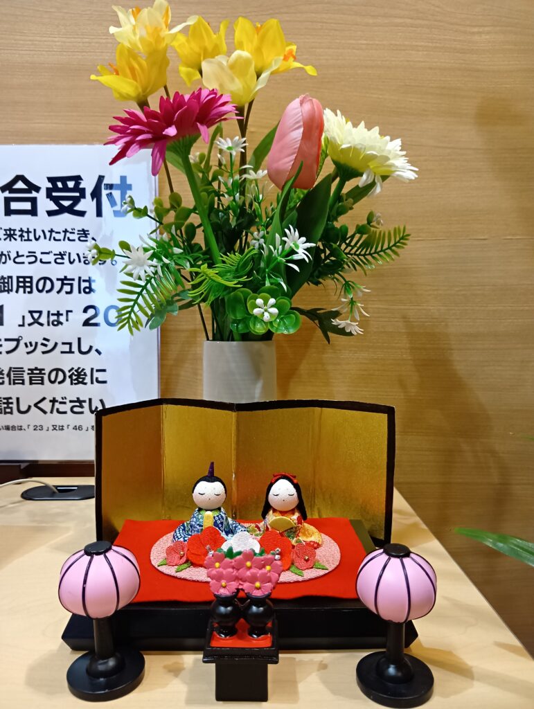 受付にお内裏様とお雛様が飾られています!